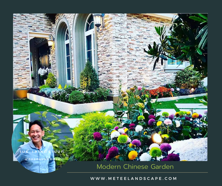 สวนโมเดริน์เป็นสวนสไตล์ที่ชอบความเป็นเส้นสาย ดูแลเรียบง่าย และทันสมัย แต่สำหรับสไตล์จีนนั้นจะแตกต่างจากออกมาคือ ในส่วนของสีสันดอกไม้ที่มาเป็นแนว colorful เลยทีเดียว โดยเน้นความสดชื่นและสดใส ตามแบบฉบับของการจัดฮวงจุ้ยให้พื้นที่บริเวณรอบบ้านมีความสดชื่น