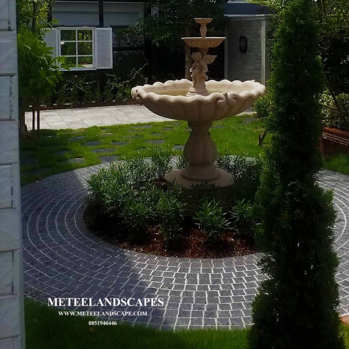 คือ ขนาดและรูปลักษณ์ของชุดน้ำพุ ซึ่งโจทย์ข้อนี้ง่ายสำหรับผมเลย ด้วยความที่เจ้าของสวนมีความชอบและมีสเปคอยู่่ในใจแล้วเพียงแต่ต้องการคำแนะนำจากผมว่าเข้ากับสวนไหม ขนาดโอเครไหม ซึ่งตรงนี้ทั้งในรูปทรงและขนาดก็ถือว่าสมดุลกับพื้นที่สวน ไม่ใหญ่จนเกินไปหรือเล็กจนเกินไป สำหรับเทคนิคง่ายๆ เวลาเพื่อนๆไปเลือกน้ำพุนะครับ ก็ขอให้ดูขนาดพื้นที่ของเราเป็นอันดับแรกครับ และลองจินตนาการว่าเราจะวางตรงไหน เท่านี้แหล่ะครับเพื่อนๆจะได้คำตอบทันทีเลยว่าเหมาะหรือไม่เหมาะกับพื้นที่ ครับ